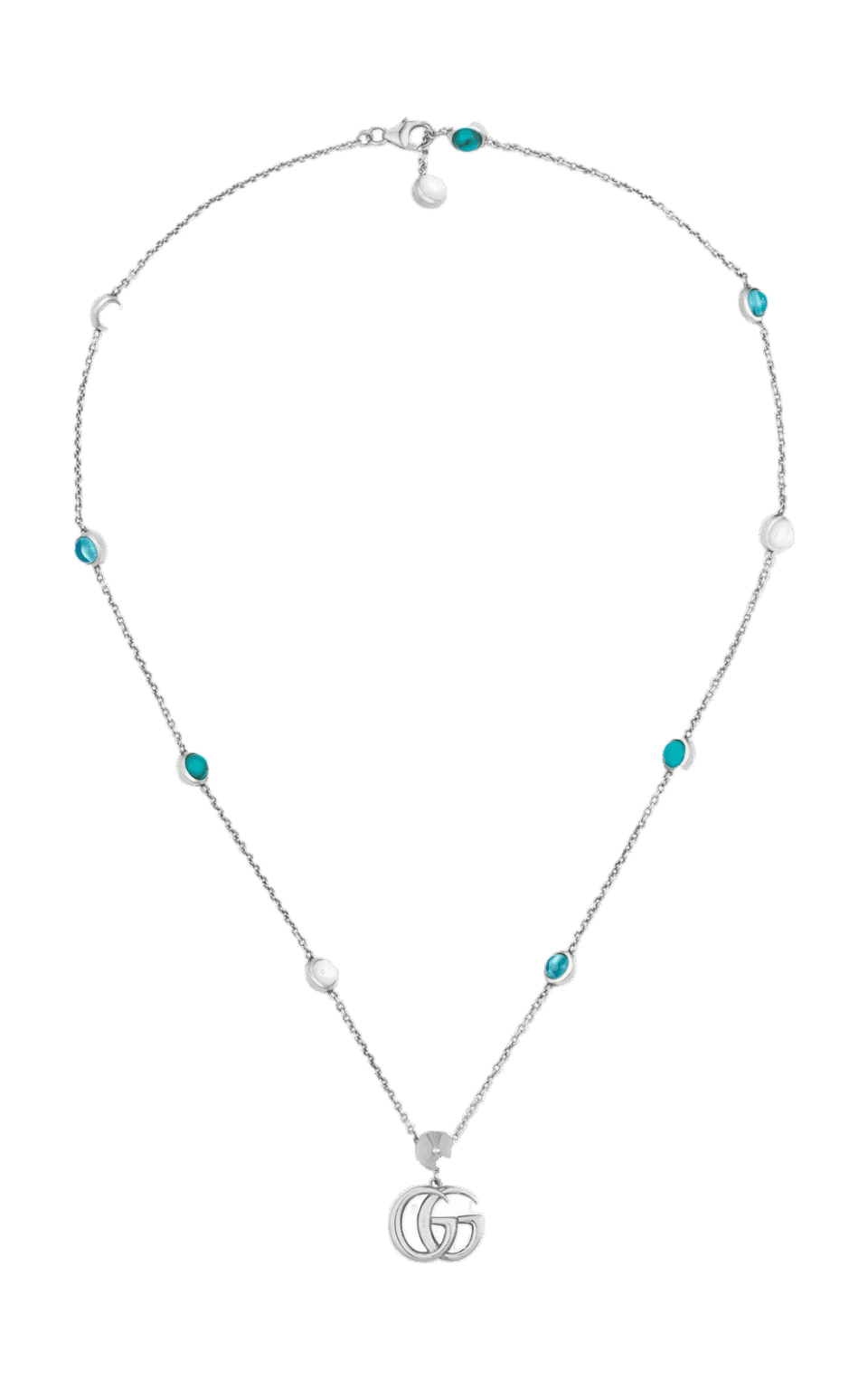 GG Marmont kaulakoru, hopea, helmiäinen, turkoosiksi värjättyä hartsia ja sininen topaasi