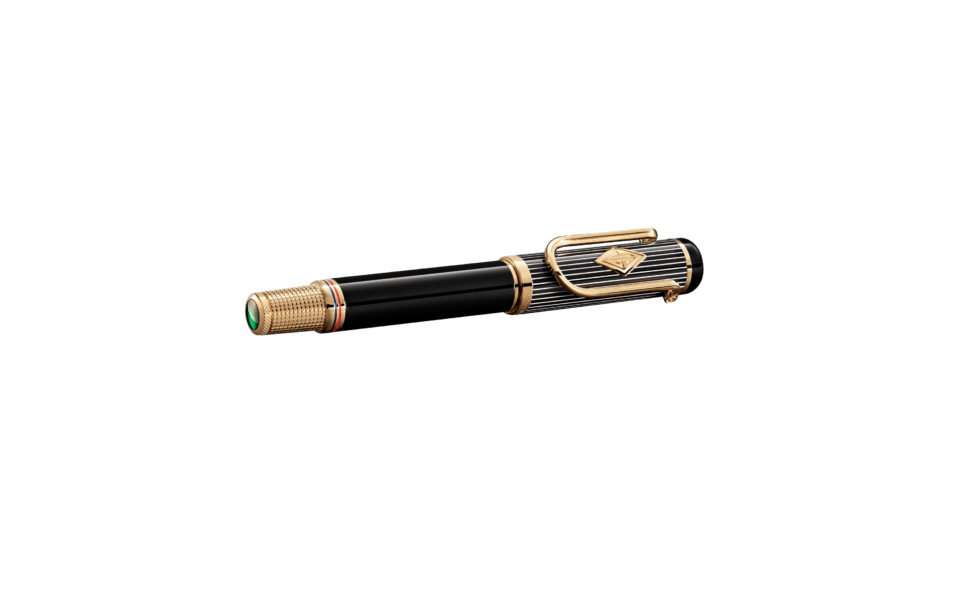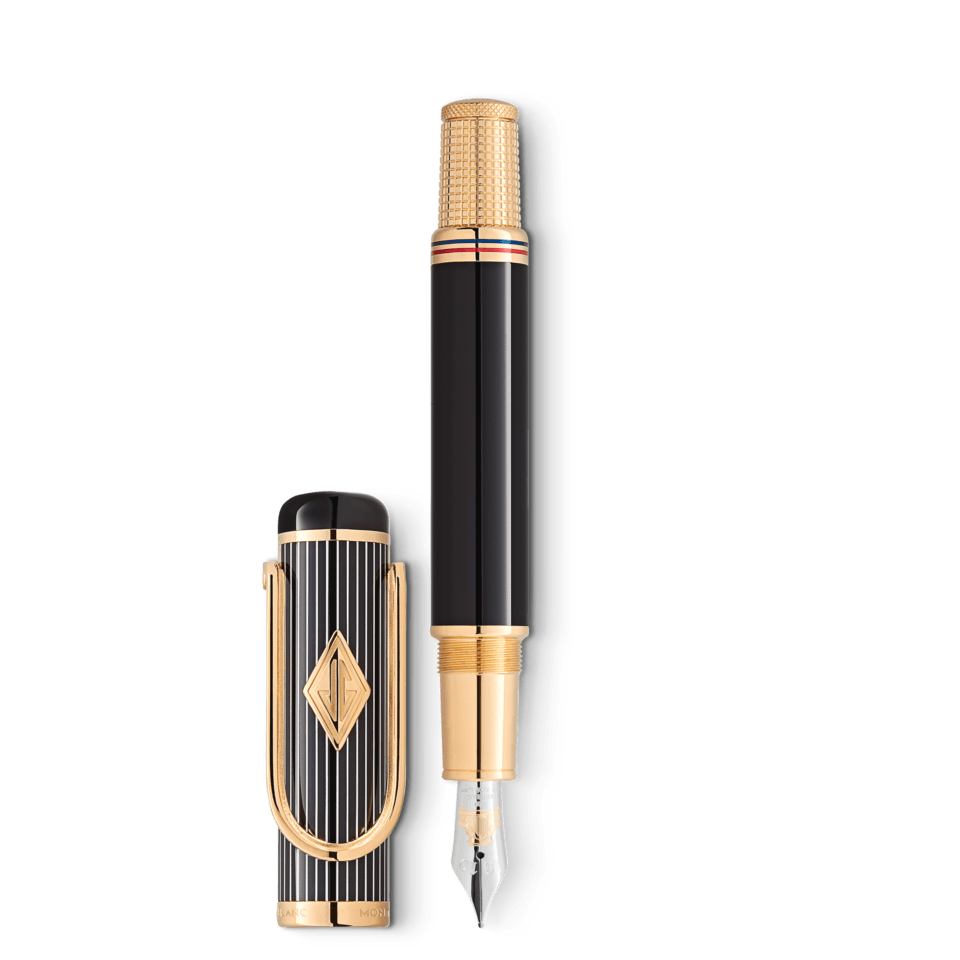 Tämän kirjoitusvälineen muotoilu on saanut inspiraationsa aikakauden tyylistä. Mustavalkoisesta lakasta valmistettu raidallinen korkki yhdistyy mustaksi lakattuun runkoon. Platinapäällysteinen, rahaklipsin muotoinen klipsi symboloi rahan näennäistä voimaa, ja sen suuaukkoa koristaa Jay Gatsbyn nimikirjaimista muodostuva Art Deco -monogrammi. Kartio muistuttaa kaiverrettua pullonkorkkia ja sen renkaat viittaavat Amerikan lipun väreihin. Helmiäisestä valmistettu Montblancin tunnus heijastaa Art Deco -kauden korumuotoilun eleganssia. Käsintehtyä kaksiväristä, rodiumilla päällystettyä Au 750 -kultakärkeä koristaa kuva Jay Gatsbyn ylellisestä autosta.
