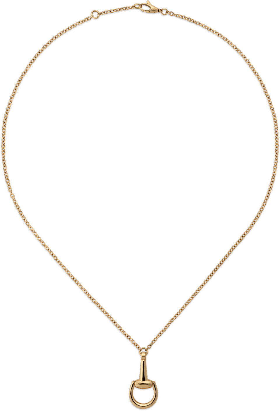 Gucci juhlistaa Horsebit-korusarjan 20-vuotisjuhlaa klassisilla ja ikonisilla 18 karaatin keltakultaisilla kappaleilla. Tämä ketjukaulakoru on tunnistettavissa puolikkaasta Horsebit-riipusyksityiskohdasta.