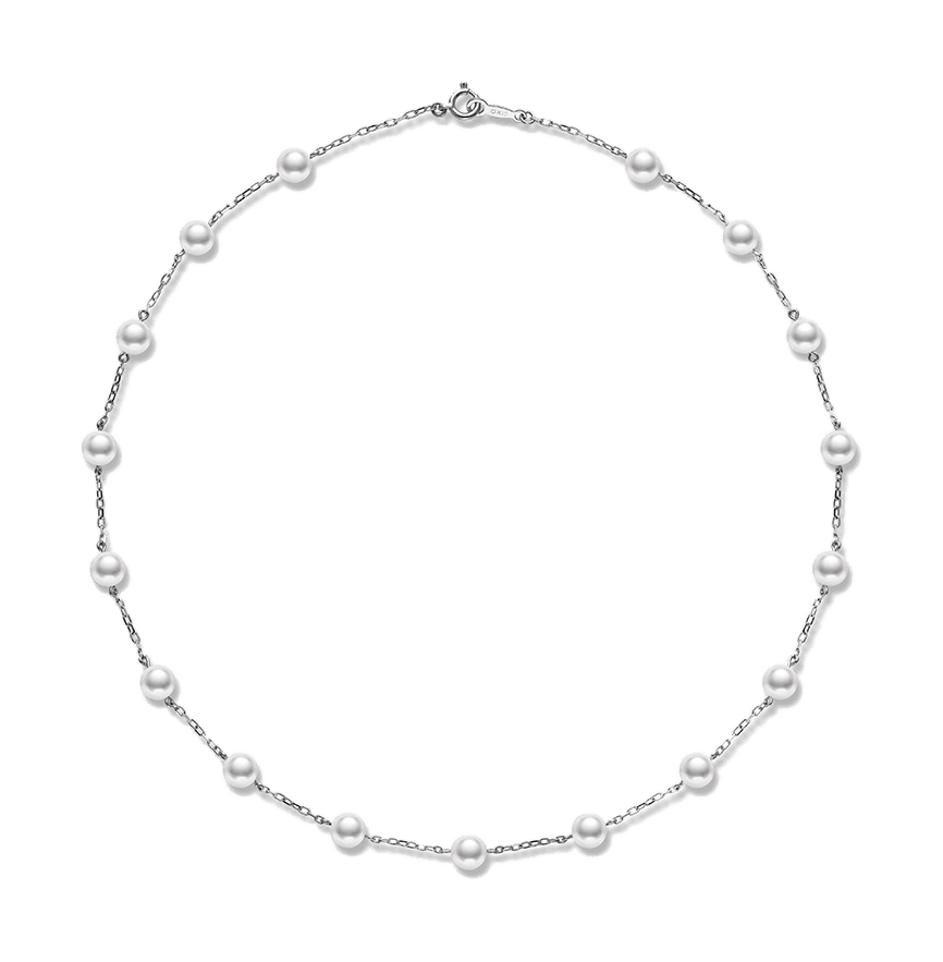 Ajaton lisä korukokoelmaasi. Tämä kaunis helmi kaulakoru on näyttävä sekä yksinään, että muiden helmi korujen kanssa. 18k valkokulta ketjussa on 18 kappaletta Akoya-viljeltyjä helmiä (5.50-5.75mm). Kaulakorun pituus on 40cm.