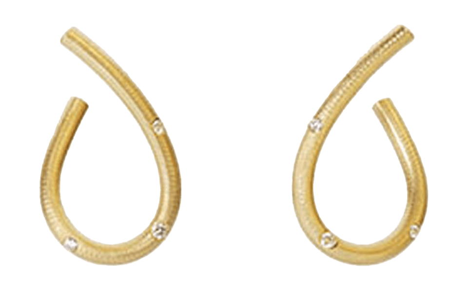 Dulong Fine Jewelry ikoniset Kharisma korvakorut ovat ajattomat ja ylelliset. Kaunis kaarre on elegantti yksinkertaisuudessaan. Sen rosoinen, mutta sileä pinta leikittelee valolla ja laaja valikoima riipuksia mahdollistaa yksilöllisen kokonaisuuden luomisen. Pienin koko on hillityin ja tässä koristeltuna kolmella briljanttihiotulla timantilla kummassakin korvakorussa.