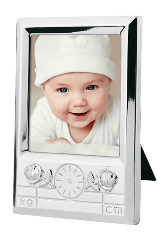 Suloinen pieni kehys, johon saa kaiverrettua lapsen syntymätiedot.