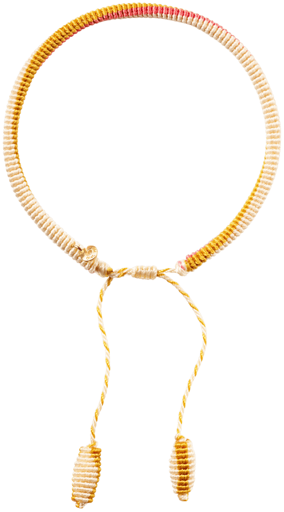 Charlotte Lynggaardin suunnittelema Life Honey -rannekoru on solmittu käsin yhdeksällä langalla, joista jokainen on kudottu kuudesta käsin värjätystä langasta. Rannekoru on viimeistelty tyylikkäästi 18 k kultaisella tunnuksella.