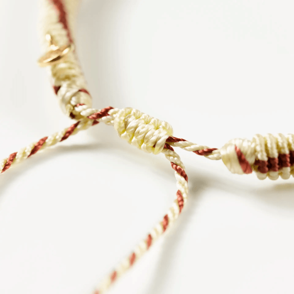 Charlotte Lynggaardin suunnittelema Life Seashell -rannekoru on solmittu käsin yhdeksällä langalla, joista jokainen on kudottu kuudesta käsin värjätystä langasta. Rannekoru on viimeistelty tyylikkäästi 18 k kultaisella tunnuksella.