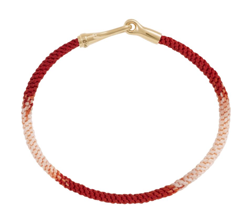 Life rannekoru Red Emotions -värissä. Rannekoru on käsin solmittu ja lukko-osa on 750 keltakultaa.