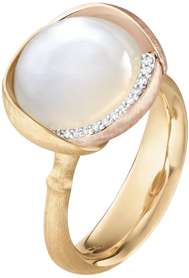 Charlotte Lynggaardin suunnittelema Lotus-sormus on valmistettu 18 karaatin kelta- ja punakullasta, ja siinä on 13 timanttia, yhteensä 0,05 karaattia TW.VS, ja valkoinen kuukivi. Kultaseppien käsin tekemät näkyvät kultapinnat ovat käsin satinoidut, kun taas sormuksen sisäpuoli on kiillotettu. Osa Lotus-kokoelmaa. Huomaa: Koska jalokivet ovat luonnonmateriaaleja, jokainen kivi on täysin ainutlaatuinen. Ne vaihtelevat väriltään ja niissä on yksilöllisiä, ainutlaatuisia sulkeumia ja ominaisuuksia. Kivien web-kuvat edustavat vain tuotetta tilauksen yhteydessä saamaasi ainutlaatuista kiveä, eivät tarkkaa kiveä.