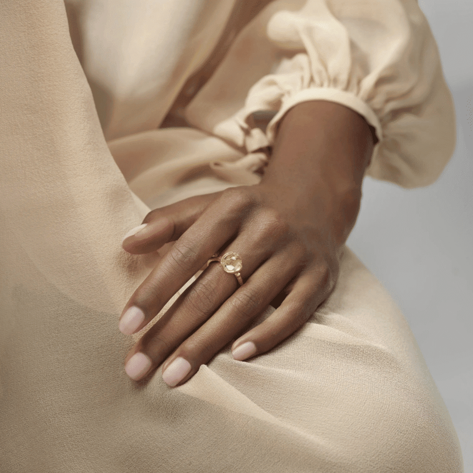 Lotus sormus – 18K keltakultaa – lehdet ovat ruusukultaa ja kivi rutiilikvartsi.