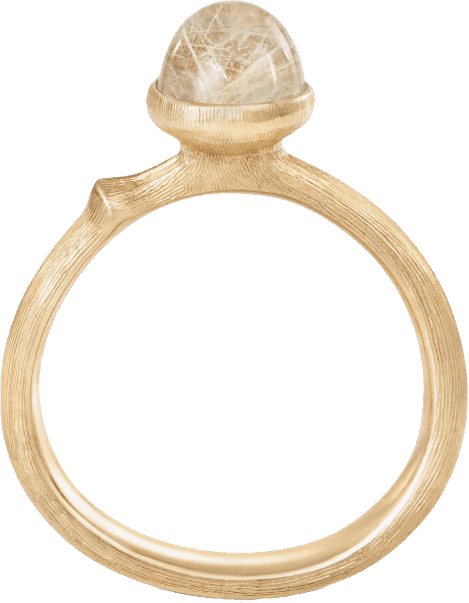 Lotus sormus, pienikokoinen malli, 18K keltakultaa ja rutiilikvartsi.