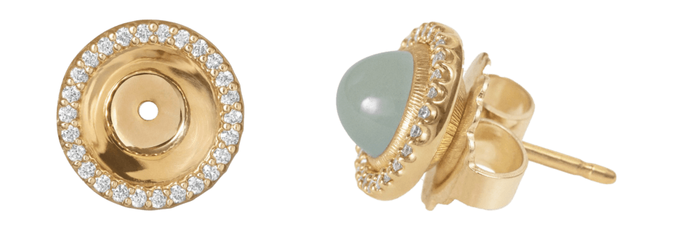 Lotus-timanttikehykset korvakoruille 18 karaatin keltakultaa, jossa 52 timanttia yhteensä 0,20ct. TW.VS. Myydään pareittain (sis. pari Gigan takakappaletta).