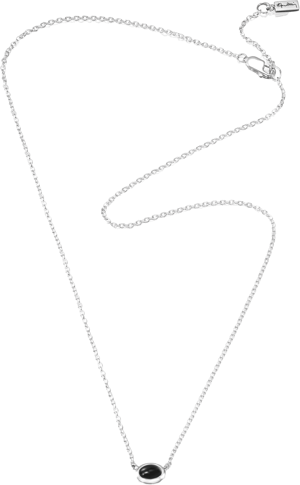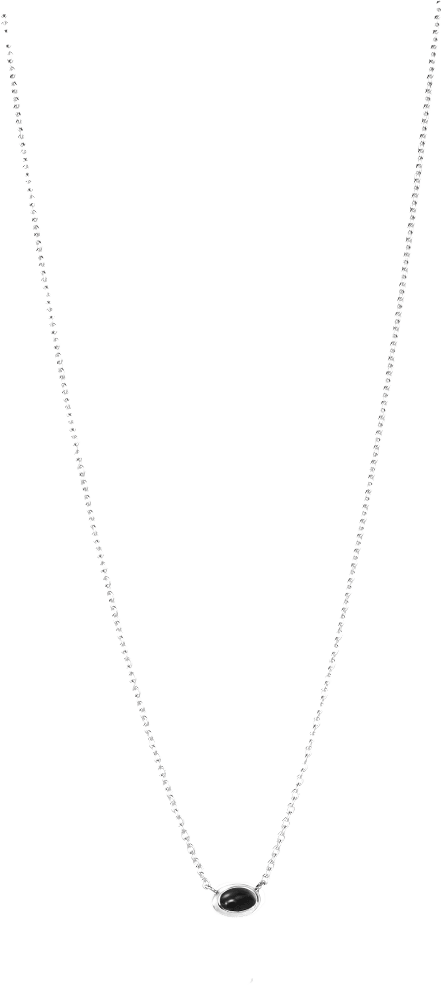 Sterlinghopeisen kaulakorun riipus on onyksihelmi. Kaikki korumme valmistetaan kierrätetystä kullasta, valkokullasta ja hopeasta.