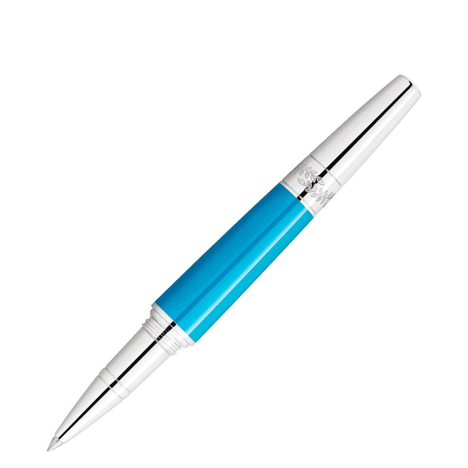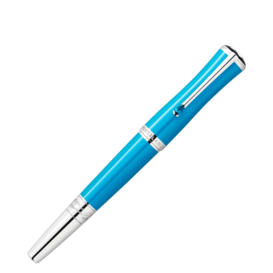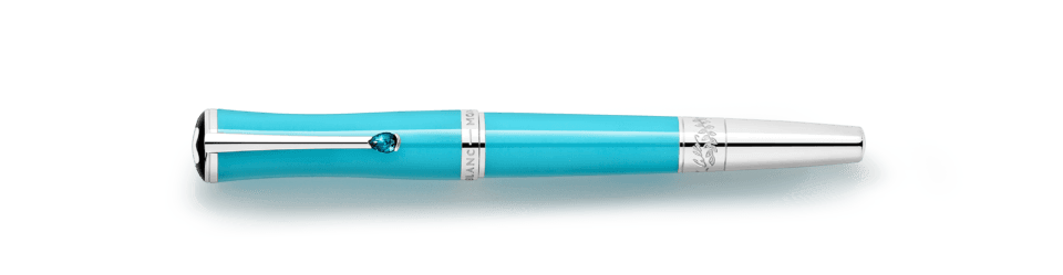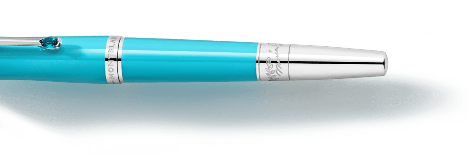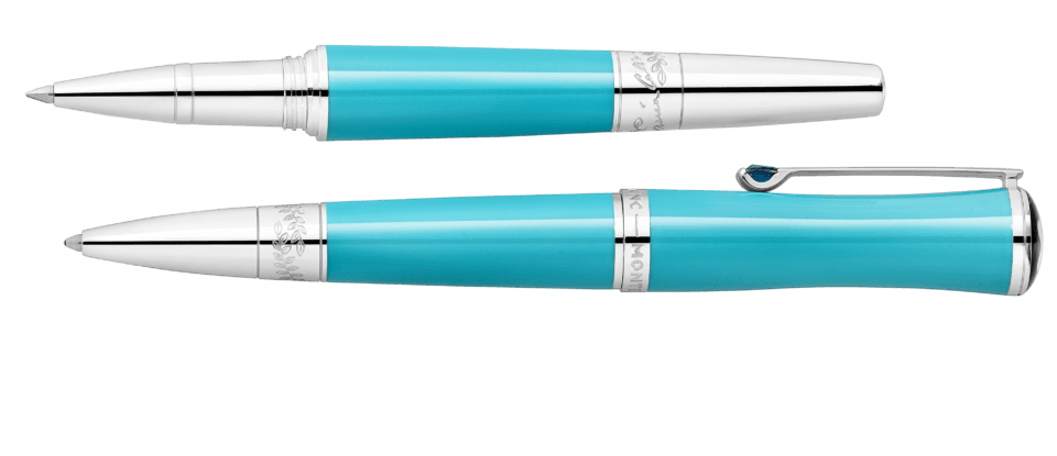 Montblanc Maria Callas Special Edition Turquoise-Coloured on omistettu yhdelle 1900-luvun karismaattisimmista sopraanoista ja arvostetuimmasta tyyli-ikonista. Lahjakkuudellaan, intohimollaan ja persoonallisuudellaan hän ilmensi tietynlaista oopperadiivan ihannetta. Joissakin maailman suurimmissa oopperataloissa, Milanon La Scalasta Pariisin oopperassa ja New Yorkin Metropolitan-oopperassa, hänet tunnettiin nimellä ”La Divina” – jumalallinen. Painos korostaa yhtä hänen suosikkiväristään, turkoosia, korkin ja rungon arvokkaassa hartsissa, samalla, kun se heijastaa Maria Callasin siroa kauneutta hoikassa ja elegantissa siluetissaan. Muistoksi hänen meren ympäröimästä Kreikan kotimaastaan, platinapäällysteinen klipsi on koristeltu synteettisellä kivellä, jonka väri tuo mieleen säteilevän turkoosinsinisen Egeanmeren.