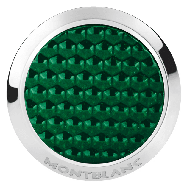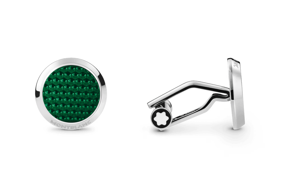 Tyylikkäät kalvosinnapit ruostumattomasta teräksestä, joissa on kuusikulmaista kuviota jäljittelevä hienostunut vihreä lakkaus. Täydellinen yksityiskohta, joka viimeistelee asusi elegantisti.