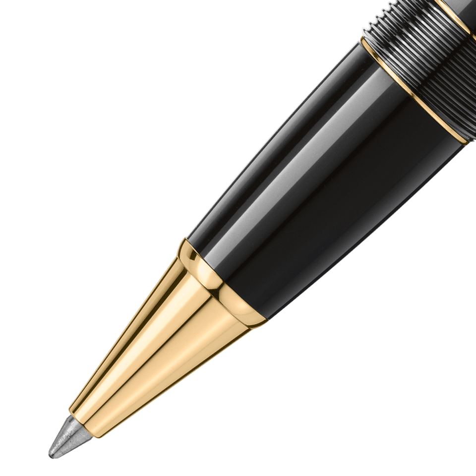 Mustasta jalohartsista valmistettu, kullatuilla yksityiskohdilla ja valkoisella tähtimerkillä koristeltu Meisterstück LeGrand kehittyy Montblancin muotoiluikoniksi.