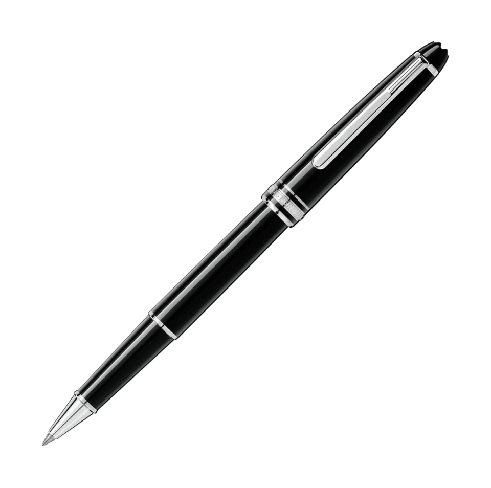 Montblanc Meisterstück Classique Platinum -pinnoitettu kynä, joka kirjoittaa historiaa. Vuonna 1924 esitellystä Meisterstückistä on tullut korkealaatuisen kirjoituksen symboli. Korkki ja piippu on valmistettu mustasta jalohartsista, ja korkin yläosassa on ikoninen valkoinen Montblanc-tunnus.