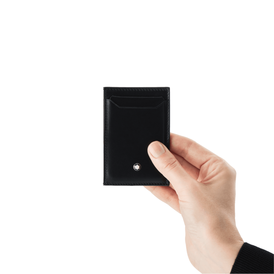 Kolmella korttipaikalla varustettu Meisterstück- korttikotelo on valmistettu uudesta syvän kiiltävästä mustasta nahasta.