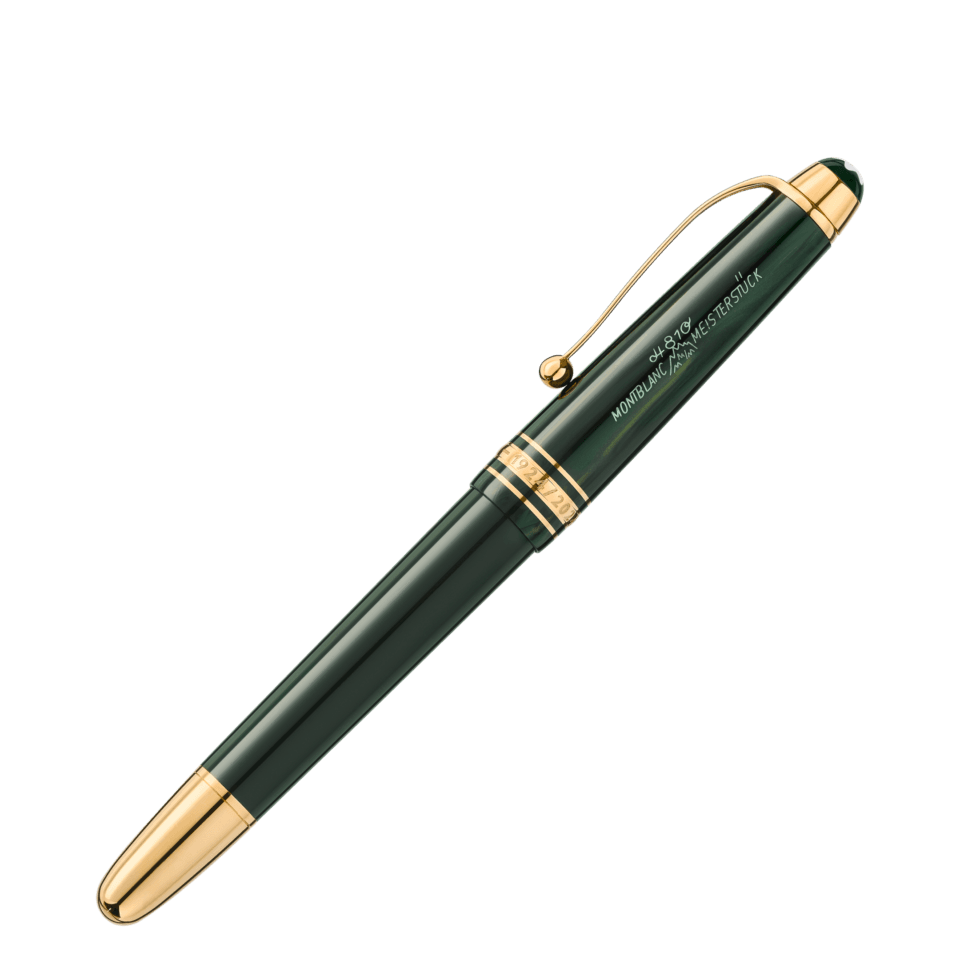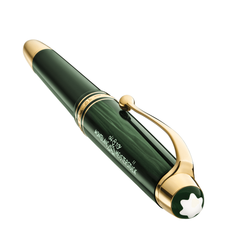 Ammattimaisestitummanvihreästä arvokkaasta hartsista valmistetussa korkissa on varhaisista malleista inspiraationsa saanut sulava kuvio, joka edustaa musteen liukenemista paperille, ja jota elegantisti kontrastoivat kullatut yksityiskohdat.