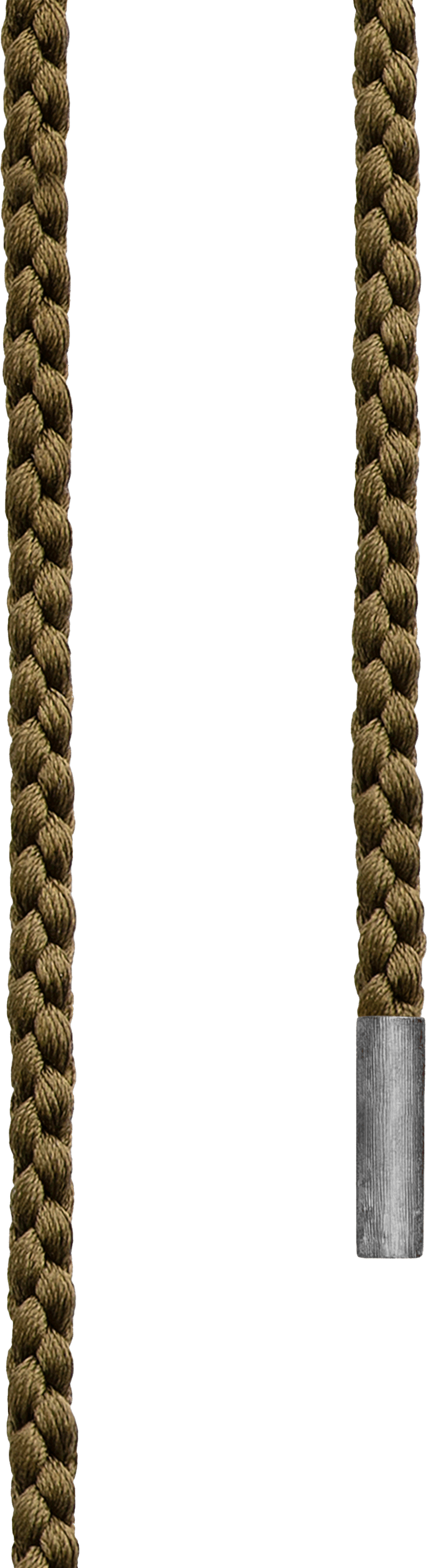 Punottu, oliivinvihreä Mokuba silkkinauha hopeisilla päätypaloilla. Nauhan kokonaispituus 130cm.