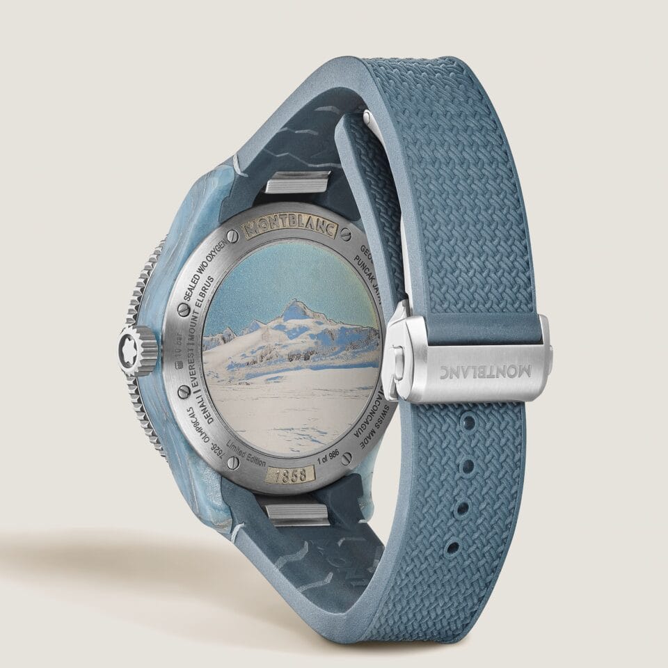 Montblancin 1858 Geosphere 0 Oxygen -mallisto vie katseen maapallon villeimpiin ja äärimmäisimpiin maisemiin. Tämä sarja on omistettu alpinistille Reinhold Messnerille ja Montblancin Mark Makerille sekä Messnerin saavutukselle nousta jokaisen seitsemän mantereen korkeimmalle huipulle. Sarjan ensimmäinen erikoisversio viittaa näistä huipuista viimeiseen, Etelämantereella sijaitsevaan Mount Vinsoniin.