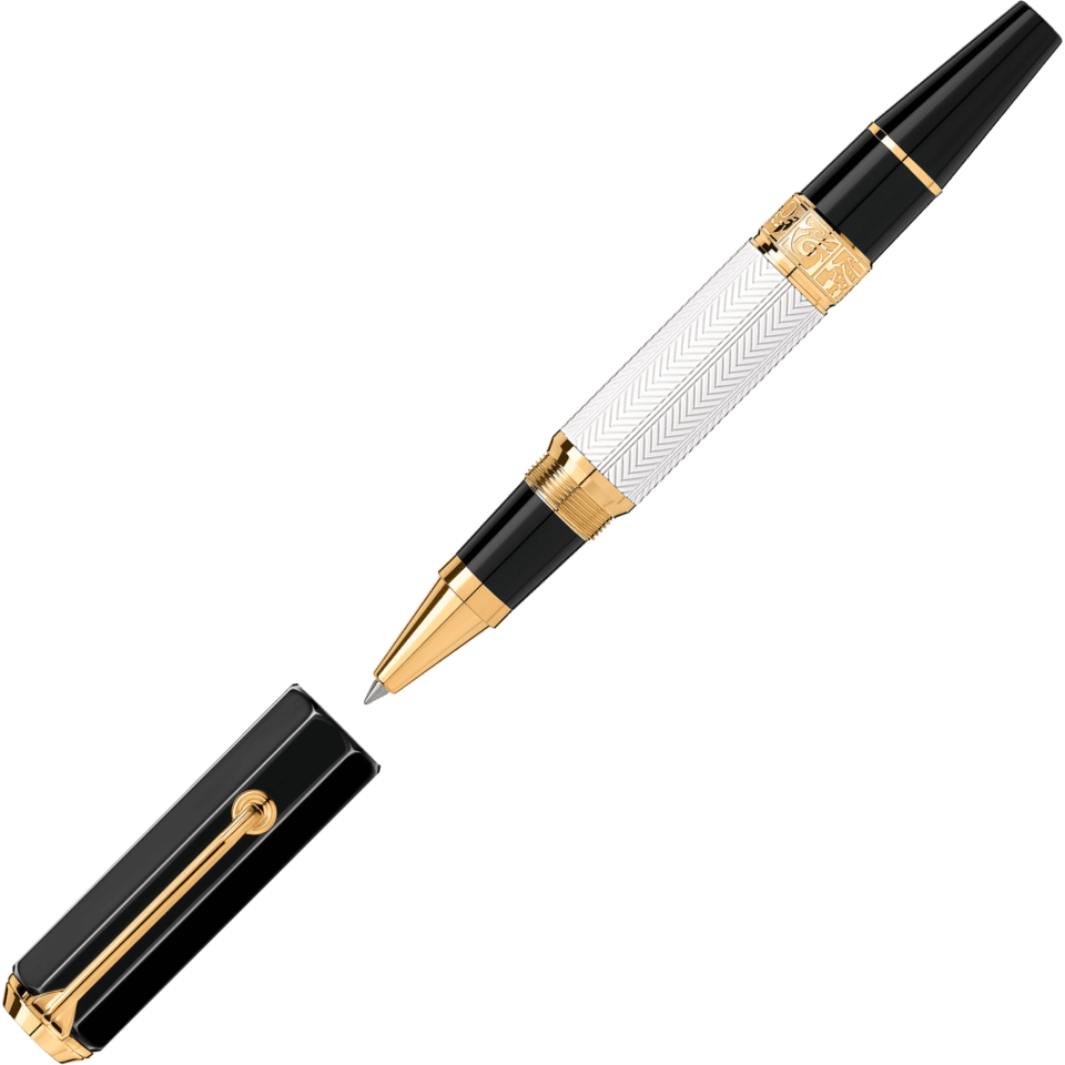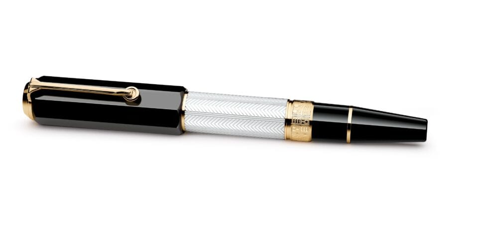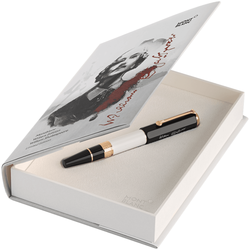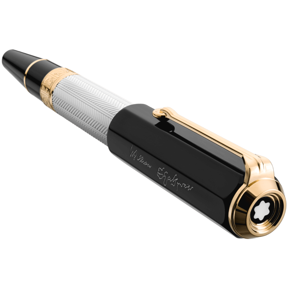 Kynä on valmistettu mustasta ja valkoisesta hartsista, viittauksena Shakespearen Globe-teatterin yllä Lontoossa liehuvien lippujen väreihin esitettävän genren mukaan (musta tragedialle ja valkoinen komedialle). Kynän giljoché-kaiverrus tuo mieleen Shakespearen kirjoittaessa teoksiaan käyttämät sulkakynät, klipsirengas edustaa Shakespearen käyttämää korvakorua ja korkki kuvaa linnun perspektiiviä, katsoen Shakespearen Globe-teatterista. Kynän kultaisessa nauhassa on kohokuvioituja symboleja hänen seitsemästä kuuluisimmasta näytelmästään: kallo on Hamletille, shakkinappulat Kuningas Learille, ruusu ja tikari Romeolle ja Julialle, kilpi Henry V:lle, kruunu Macbethille, pyörivä pilvi The Tempestille ja C-kirjaimen muotoinen laakeriseppele Julius Caesarille.