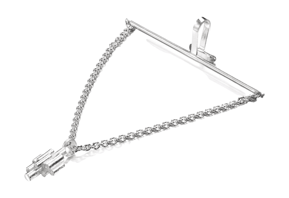 Monument solmioneula ketjulla, oksidoitua hopeaa