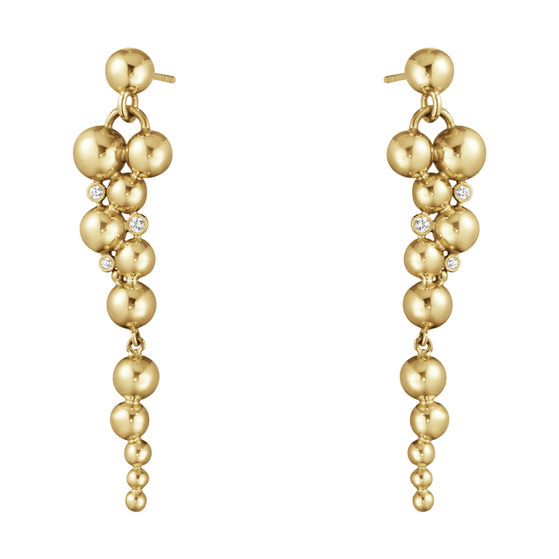 Nämä veistokselliset korvakorut on muodostettu orgaanisista 18 karaatin keltakultaisten viinirypäleiden osista, jotka on liitetty toisiinsa ja liikkuvat kauniisti käyttäjän mukana. Ajaton ja elegantti, naisellista muotoa korostavat kimaltelevat timantit.