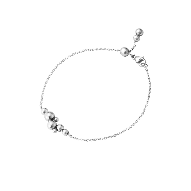 Erikokoiset hopeahelmet on ryhmitelty hienoon hopeaketjuun tässä herkässä rannekorussa. Se voidaan joko käyttää yhdessä muiden suosikkirannekorujen kanssa tai käyttää yksinään.