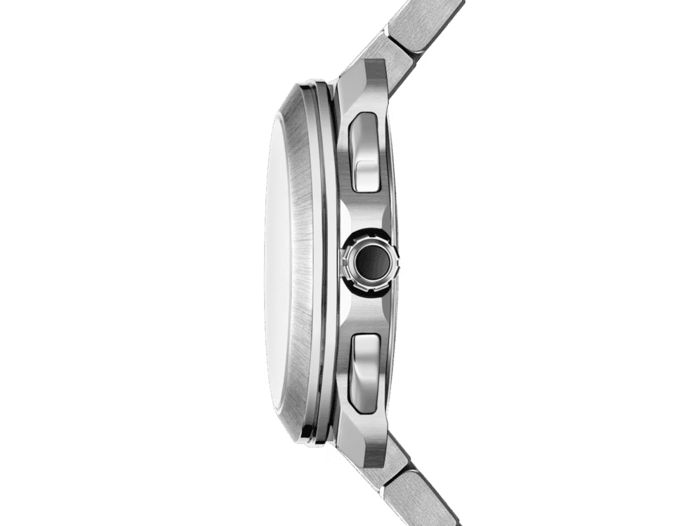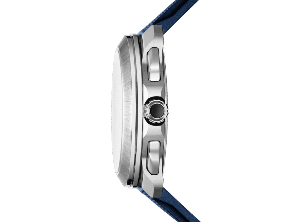 Päivämääränäyttö sijaitsee klo 4:30:ssa, pieni sekuntinäyttö klo 3:ssa, kronografin tuntinäyttö klo 6:ssa ja minuuttinäyttö klo 9:ssä. Kierrelukittava teräskruunu suojausjärjestelmällä ja 100 metrin vedenpitävyys tekevät kellosta luotettavan kumppanin myös aktiiviseen käyttöön.