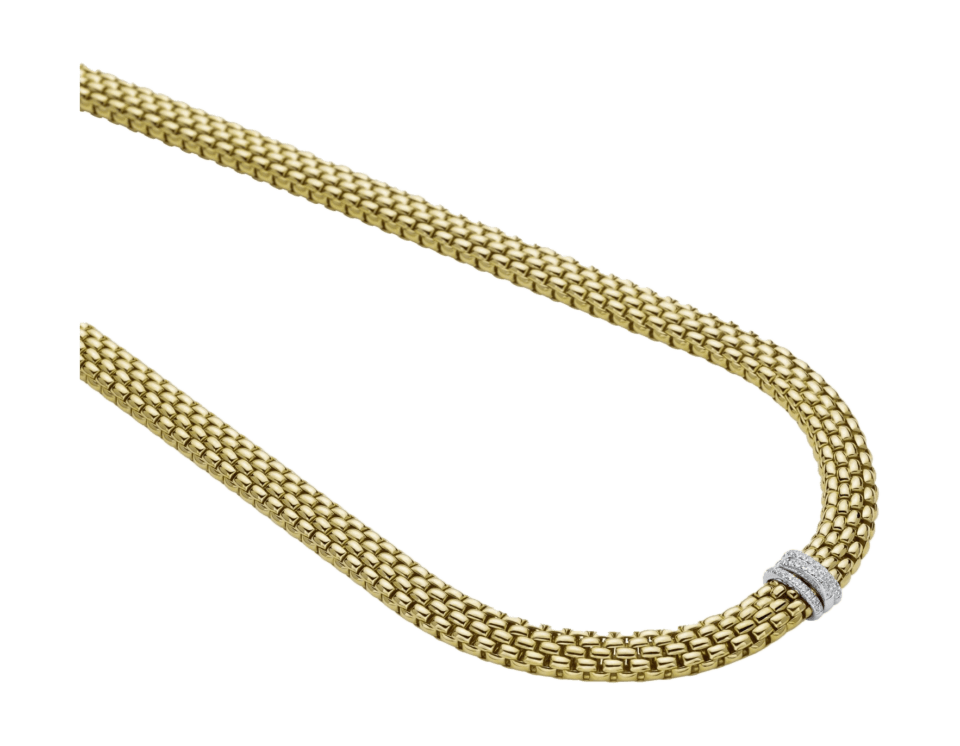 Kaikkia FOPE-koruja yhdistää omalaatuinen “Novecento” kultainen verkkoketju, ajaton klassikko, joka on muodostunut todelliseksi ikoniksi. Ketjujen kaunis kultainen punos vaihtelee kooltaan ja muotoilultaan.
