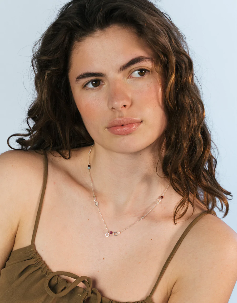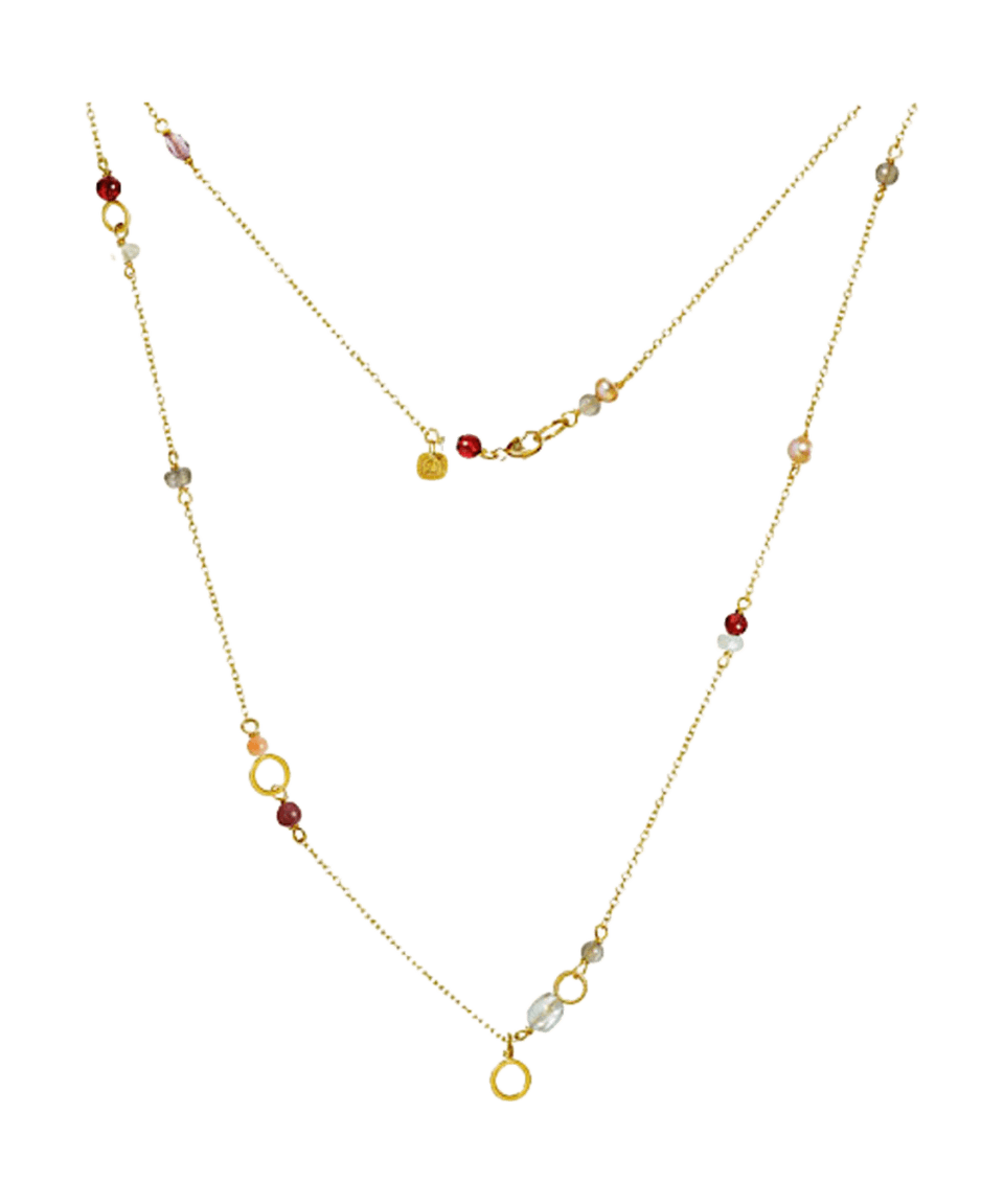 Piccolo Daybreak -kaulakoru on niin kevyt ja herkkä, että et edes huomaa käyttäväsi sitä. Tässä kaulakorussa ovat sekoittuneet kuukivi, makeanveden helmiet, granaatti, akvamariini, tähtirubiini, koralli, labradoriitti, prehniitti kalsedoni, ametisti ja amatsoniitti. Yhdistä muiden tämän kokoelman korujen kanssa saadaksesi monipuolisen ja kauniin ilmeen.