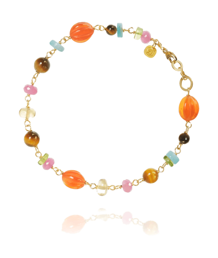 Piccolo Golden Dawn -rannekoru tuo mieleen varhaiset aamutunnit lämpimässä säässä. Kauniit värit jäljittelevät savannin värisinfoniaa ulottuen lumoavaan tummanruskeaan, houkuttelevan kirkkaan turkoosiin, herkkään vaaleanpunaiseen ja oranssiin. Piccolo Gold Dawn Limited Edition, jossa on Mogok-rubiini, peridootti, amatsoniitti ja tiikerinsilmä, on saatavana 18K keltakultaisena.