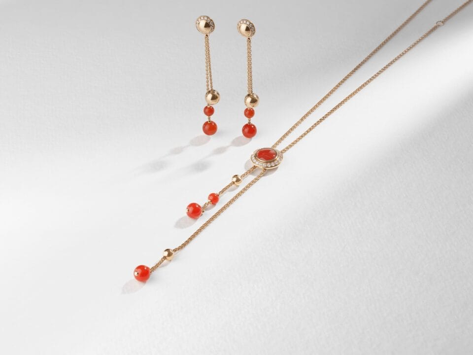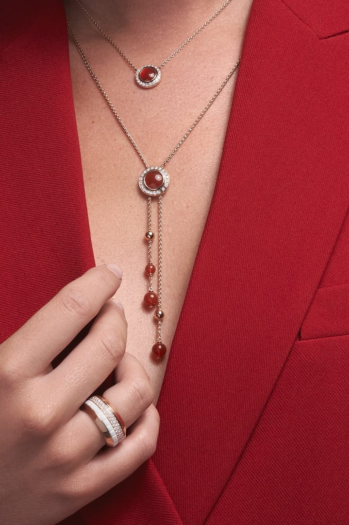 Possession-riipus on 18K punakultaa, jossa on 20 briljanttihiottua timanttia (noin 0,35 ct) ja jota koristaa 4 karneolia (noin 6,80 ct).