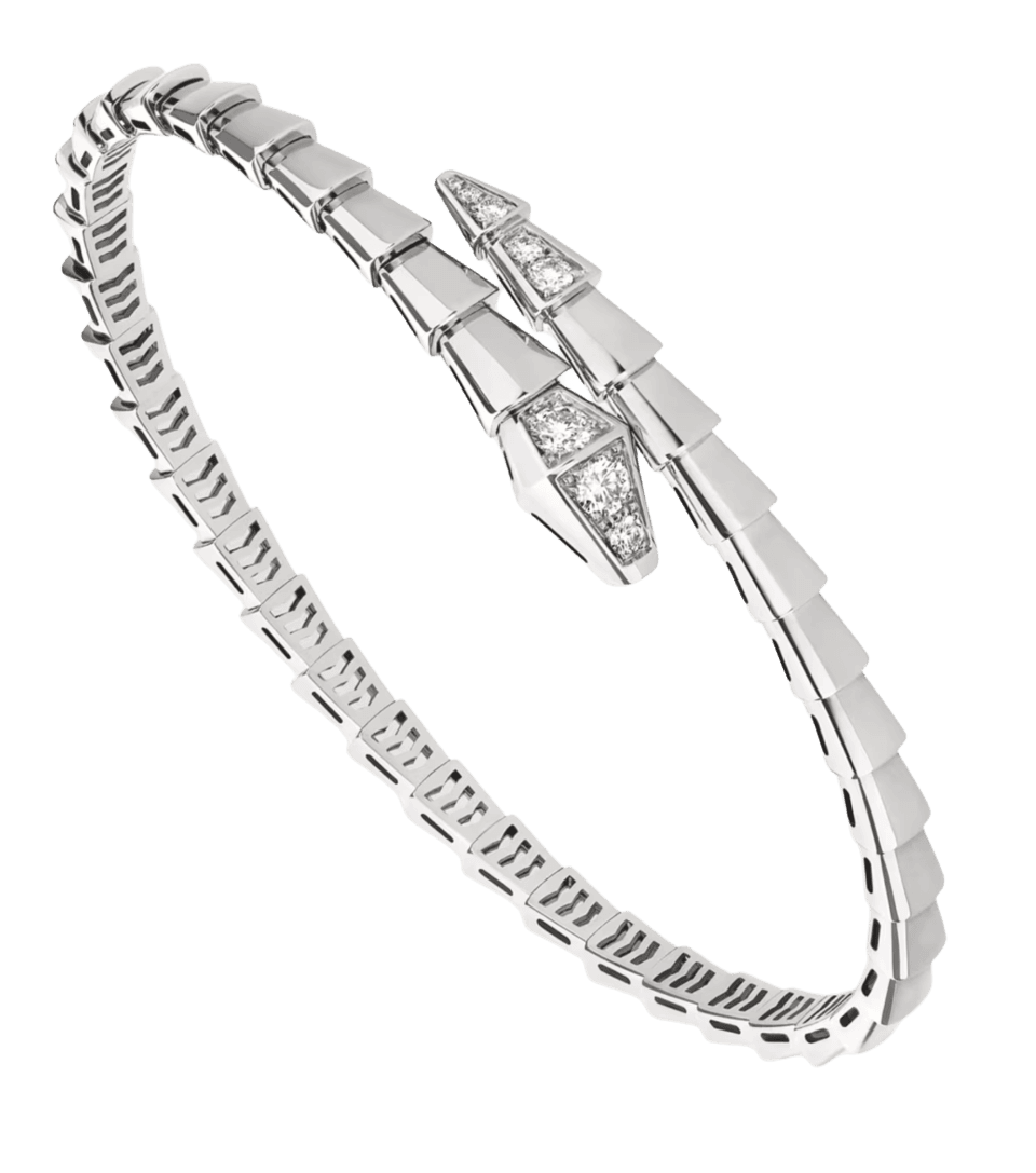 Serpenti Viper -rannekoru 18 karaatin valkokullasta ja demi-pavé-timanteilla yhdistää puhtaan estetiikan, ympäröivät muodot ja vahvan ilmeen. Se on selkeä ja ajaton tulkinta Bvlgari Serpenti -ikonista, joka edustaa jatkuvaa muodonmuutosta. Rannekoru ammentaa voimansa myyttisen käärmeen alati muuttuvasta luonteesta ja tuo esiin ajatuksen, että muutos voi olla voiman ja itsevarmuuden lähde. Helposti yhdisteltävä koru tarjoaa monia tapoja eri tyyleihin ja heijastaa kokoelman monipuolista henkeä.