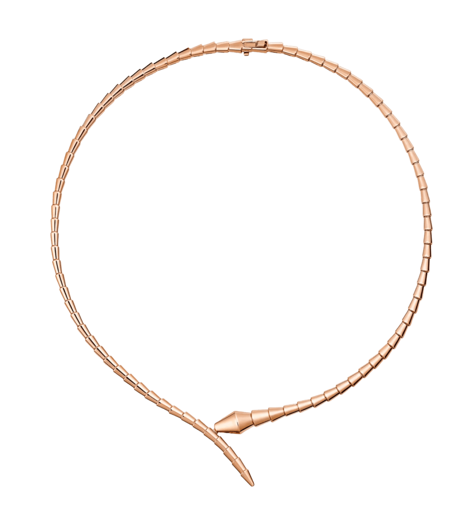 Serpenti Viper -kaulakoru 18 karaatin ruusukullasta yhdistää puhtaan estetiikan, ympäröivät muodot ja vahvan ilmeen. Se on selkeä ja ajaton tulkinta Bvlgari Serpenti -ikonista, joka edustaa jatkuvaa muodonmuutosta. Kaulakoru ammentaa voimansa myyttisen käärmeen alati muuttuvasta luonteesta ja tuo esiin ajatuksen, että muutos voi olla voiman ja itsevarmuuden lähde. Helposti yhdisteltävä koru tarjoaa monia tapoja eri tyyleihin ja heijastaa kokoelman monipuolista henkeä.