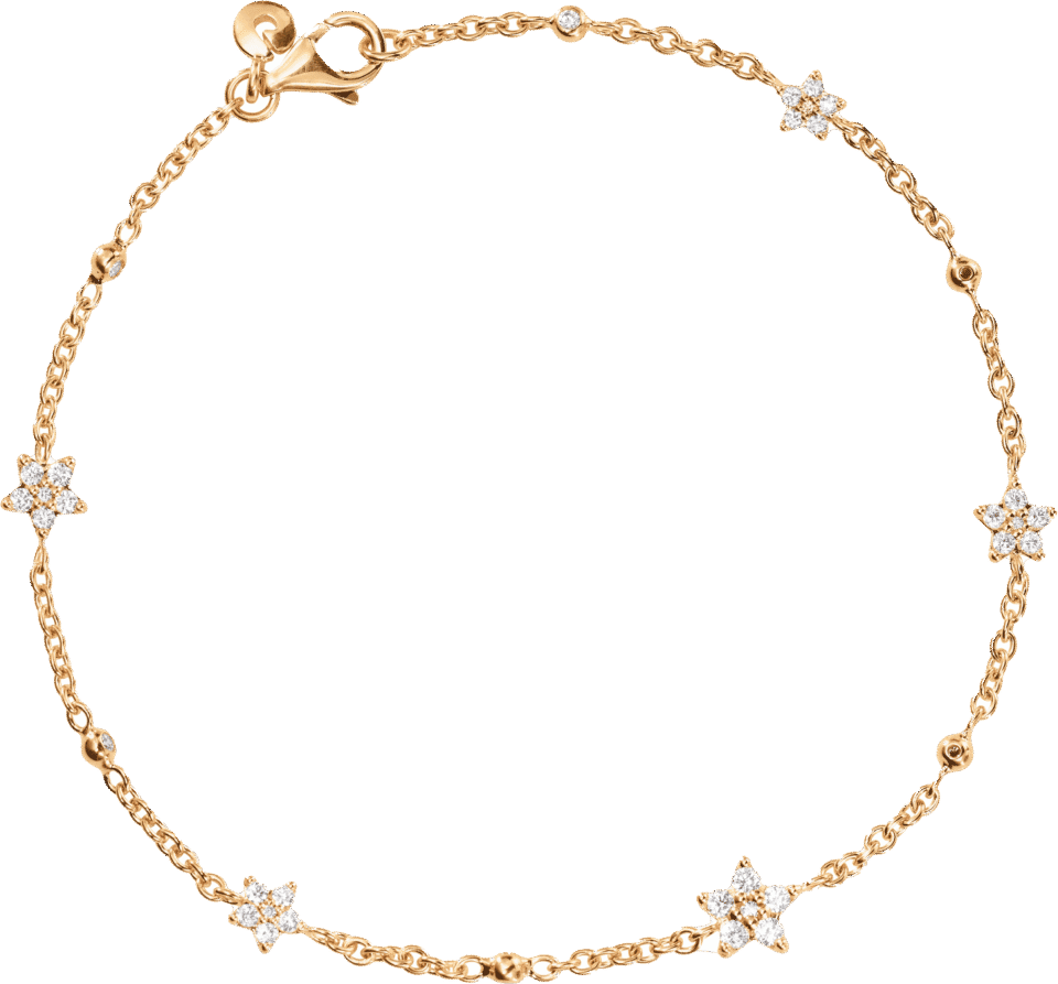 Shooting Stars rannekoru, 18K keltakultaa, 5 tähteä 35 timanttia TW.VS. yhteispaino 0,35ct. Pituus 17cm.