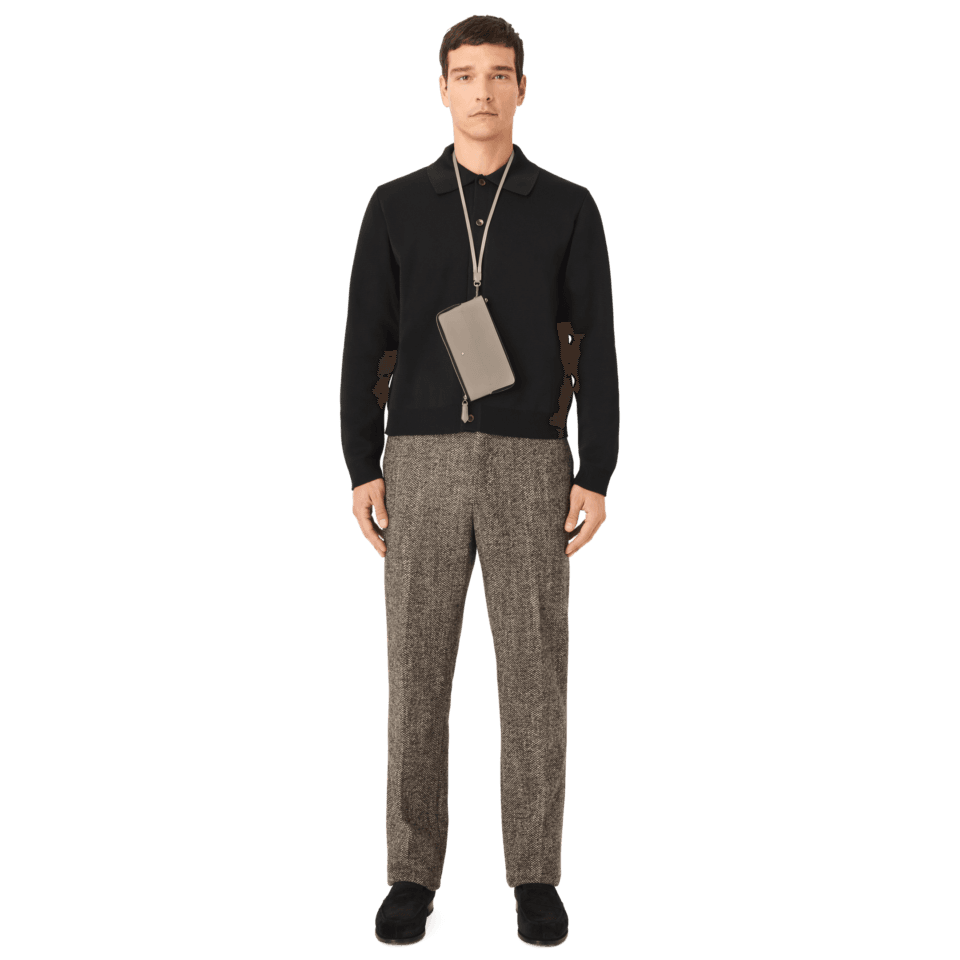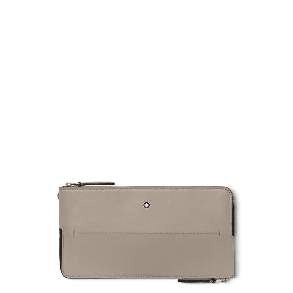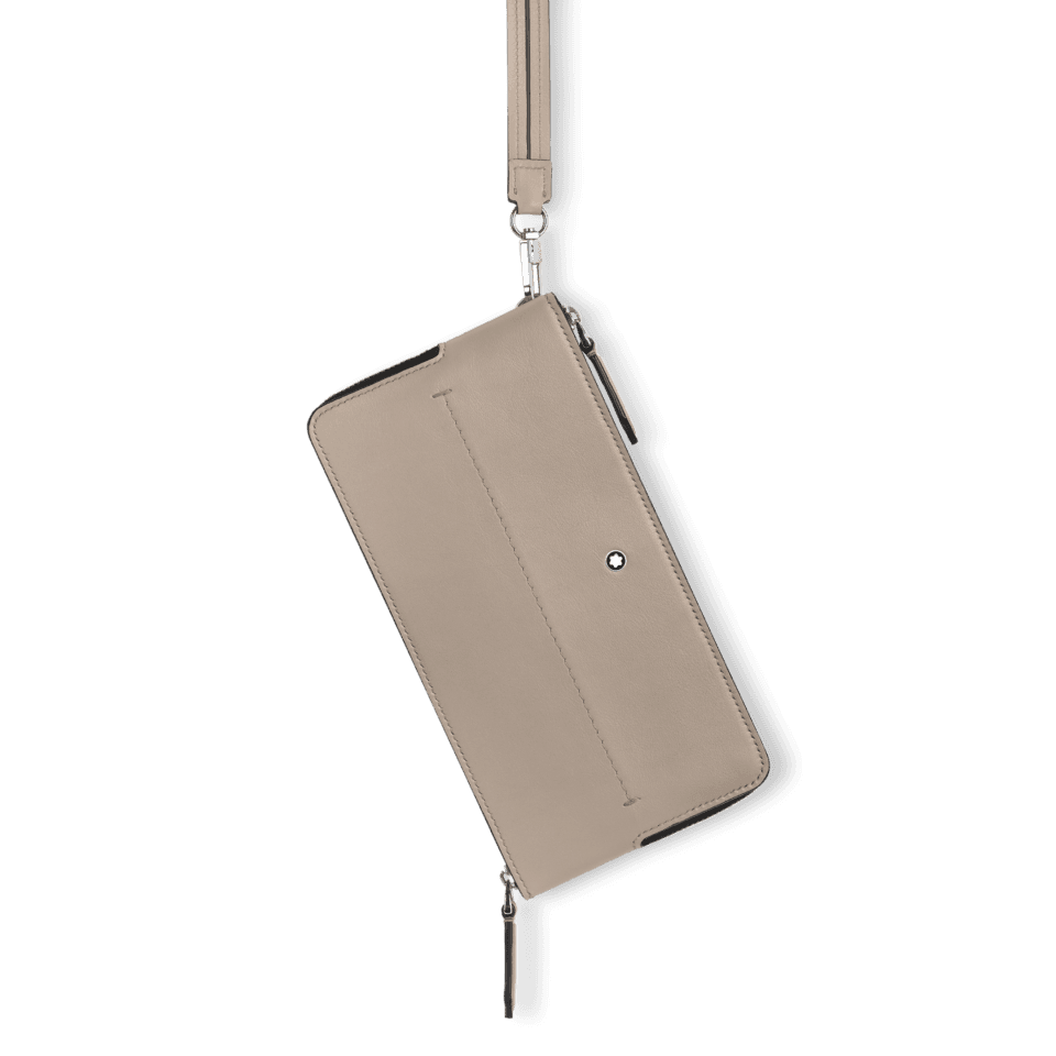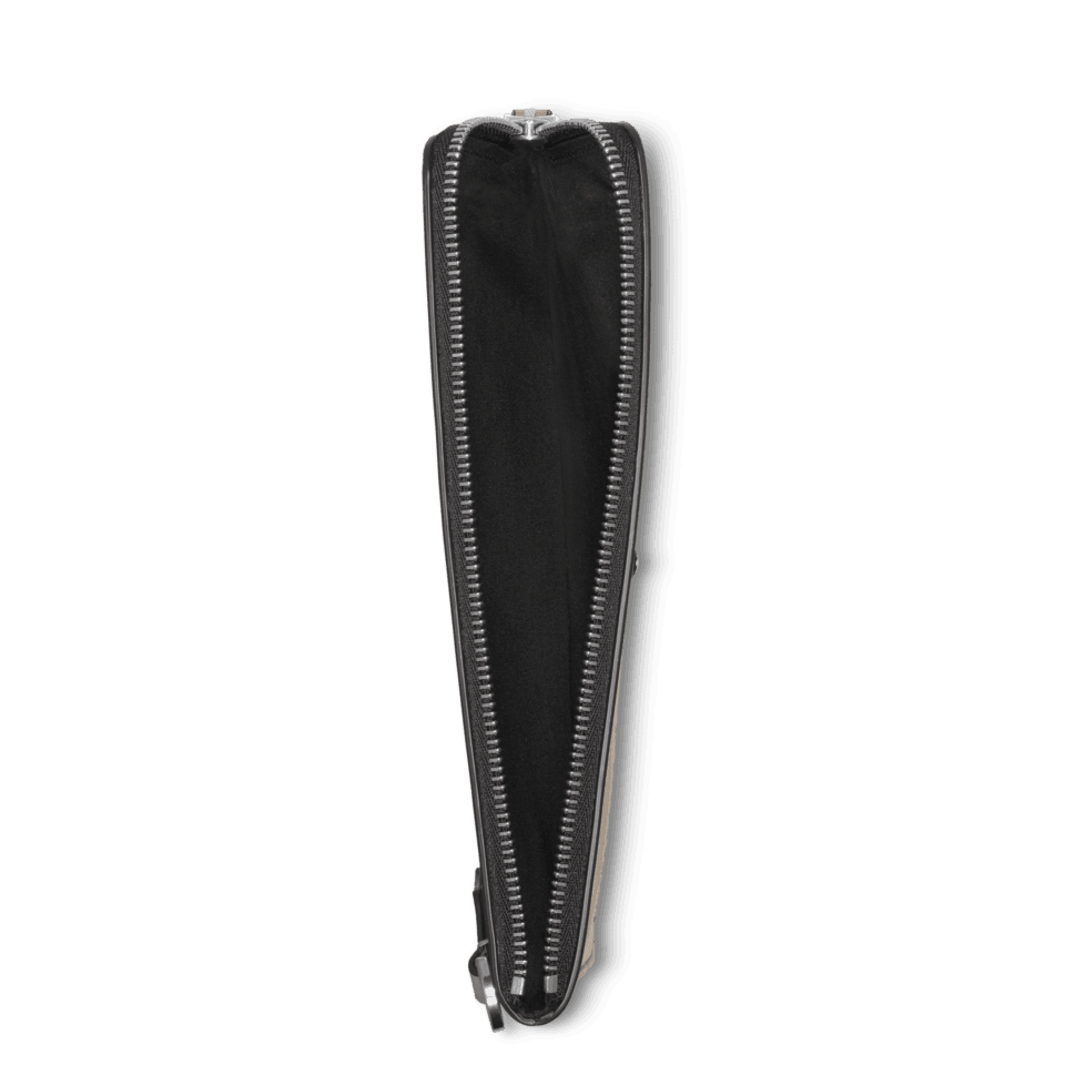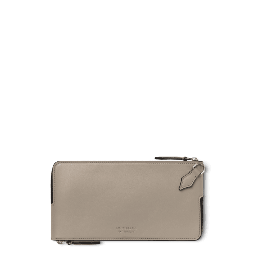Tämä pehmeä asuste on käytännöllinen valinta ammattilaisille, jotka haluavat säilyttää työ- ja henkilökohtaiset matkapuhelimensa yhdessä. Sen sisäosassa on kaksi vetoketjullista taskua, jotka sopivat enintään 6,7 tuuman kokoisille puhelimille. Pehmeä nahka antaa hienostuneen tuntuman, ja kynän kärjen muotoiset vetoketjun vedinlenkit viittaavat kirjoittamisen maailmaan. Montblancin tunnus koristaa etupuolta.