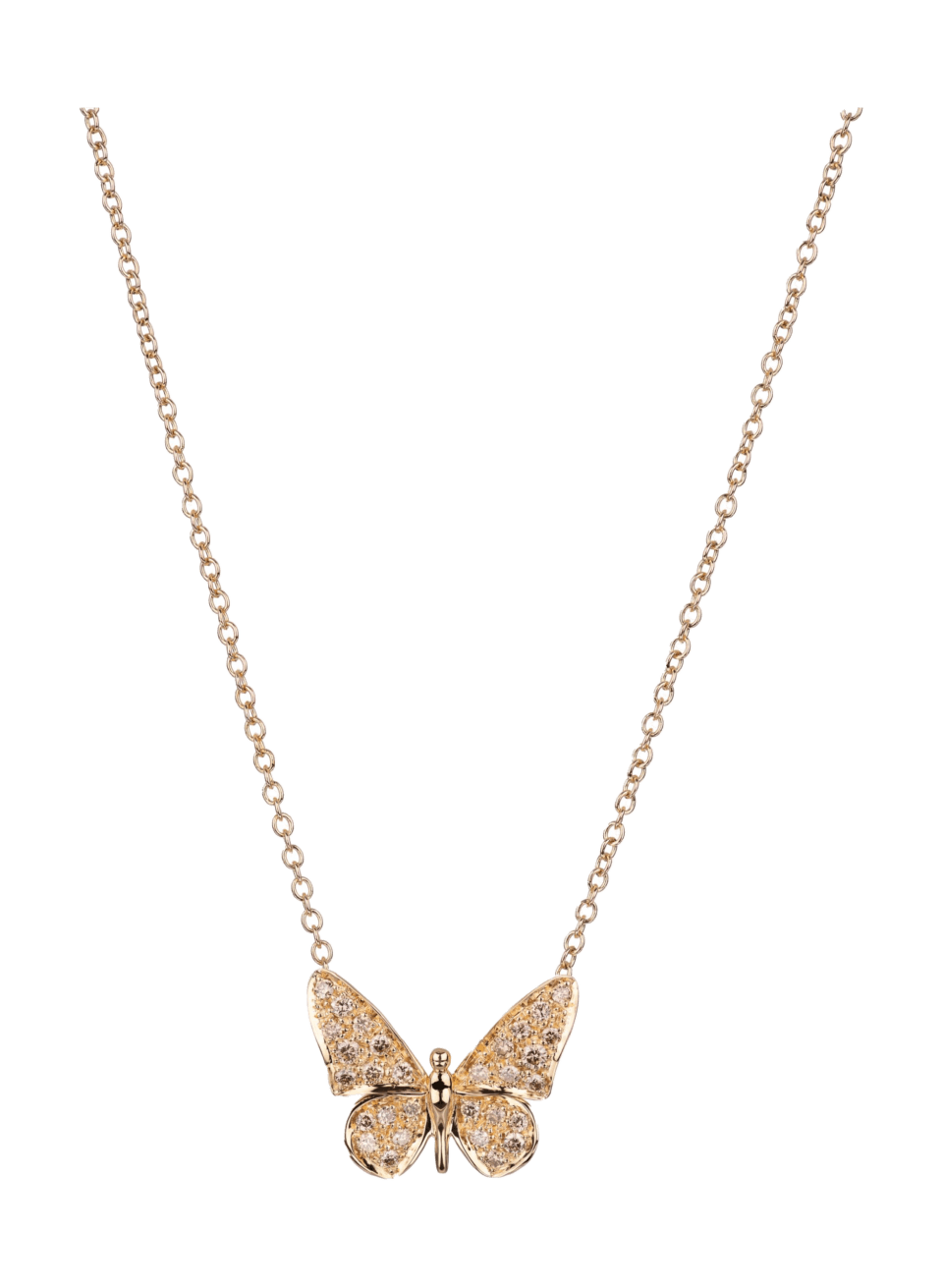 Summertime Butterfly kaulakoru keltakultaa ruskeilla timanteilla.