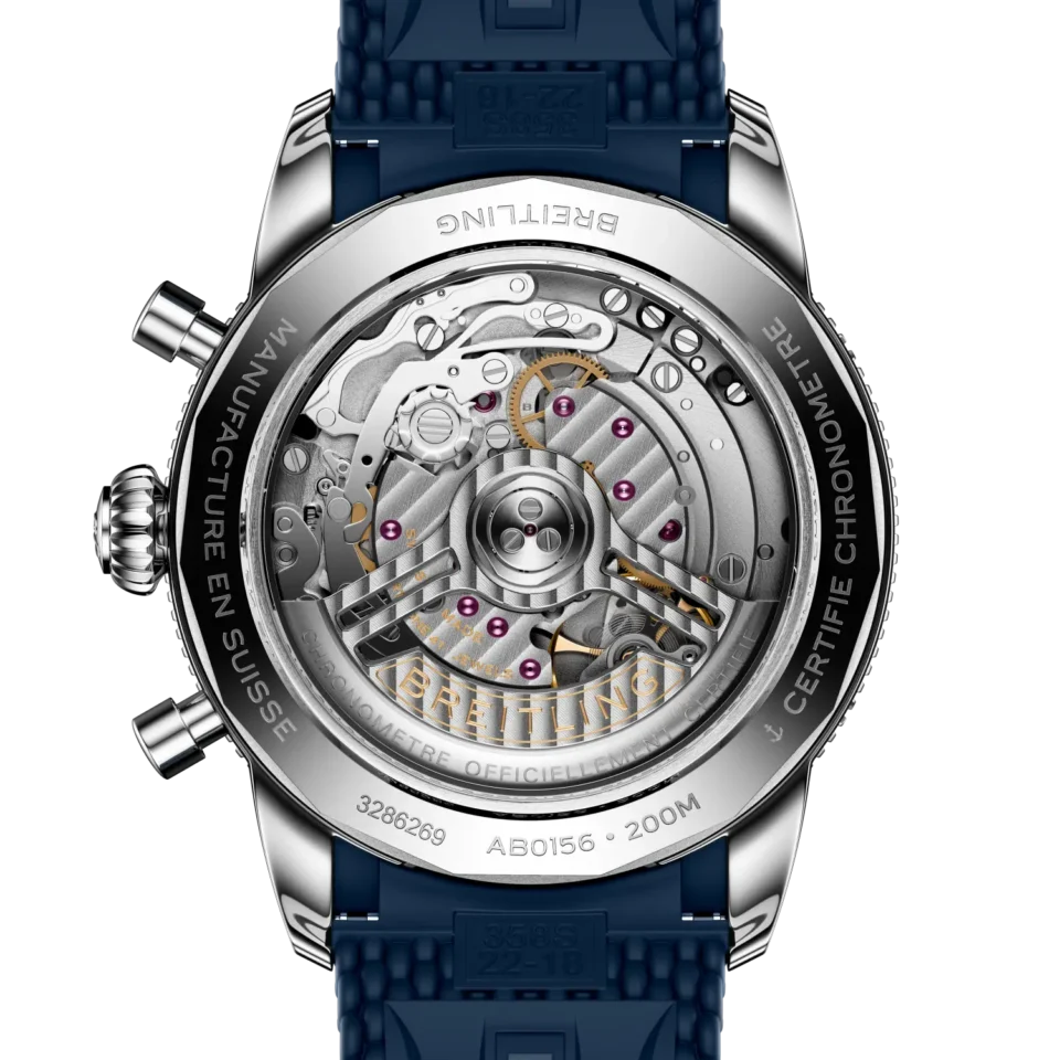 Uusin Superocean Heritage rakentaa kaiken sen varaan, mikä teki alkuperäisestä mallista ainutlaatuisen – ja hioo kokonaisuuden entistä terävämmäksi. Kronografiversion voimanlähteenä toimii Breitling Manufacture Caliber 01, yksi alan johtavista ajanmittauskoneistoista. Keraamisella upotuksella varustettu kehä tarjoaa erinomaisen naarmuuntumiskestävyyden, kun taas integroidut mesh-metalli- tai mesh-kumirannekkeet istuvat tiiviisti kuorta vasten ja kiinnittyvät taittolukoilla, luoden viimeistellyn ja vesitiiviin kokonaisuuden.
