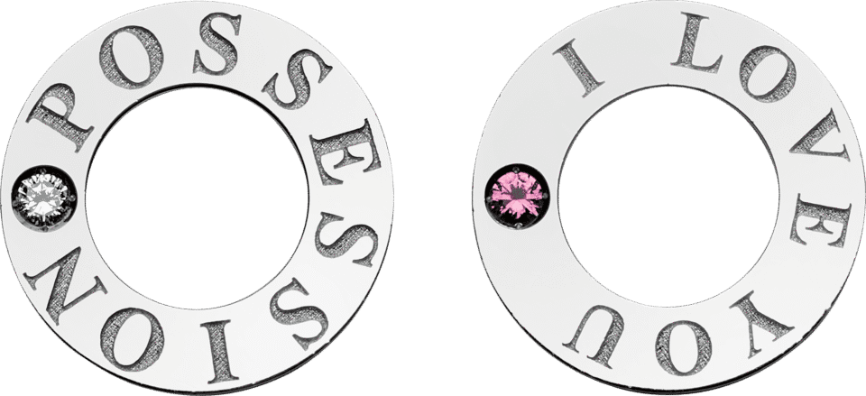 Piagetin valkokultaiset korvakorut. Moi & Toi -korvakoruissa on pinkki safiiri ja timantti.