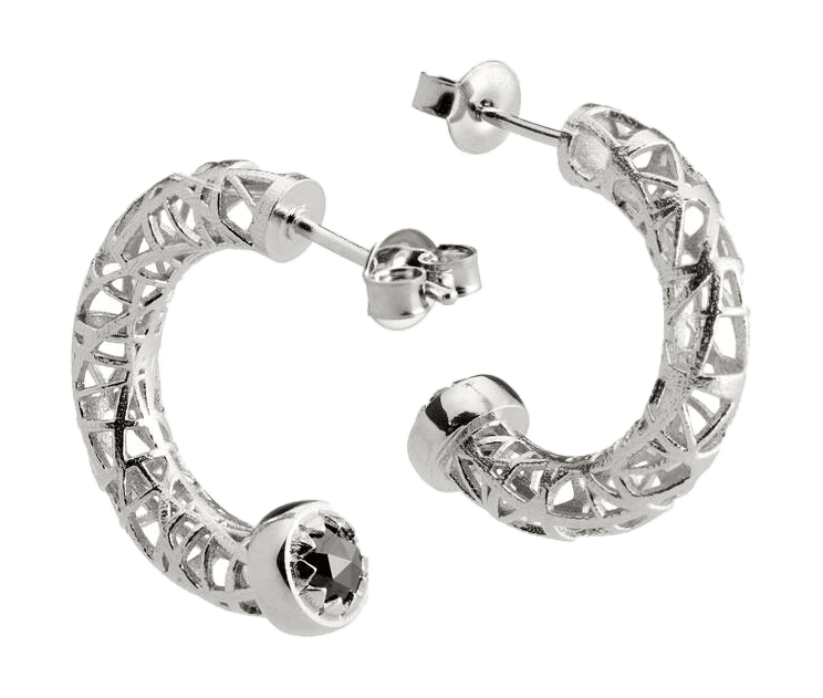 Näyttävillä Urban-korvakoruilla ilahdutat niin itseäsi kuin läheistäsi. Korujen kivet ovat mustia ruusuhiottuja zirkonioita. Korujen koko on 7x23mm.