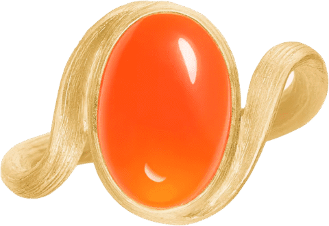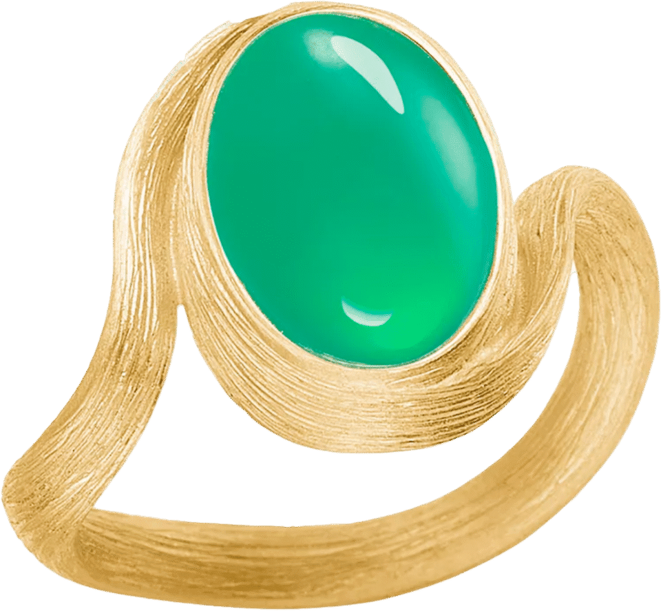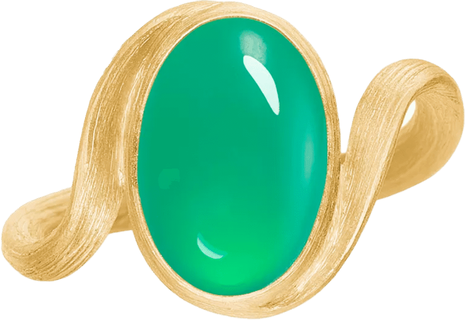Vega sormus ilmentää klassista Dulong tyyliä. Mattapintaisen kullan liukuva muotoilu, yhdessä intensiivisen vihreän krysopraasin kanssa, tuo sormukselle yllättävän ja lumoavan ilmeen.