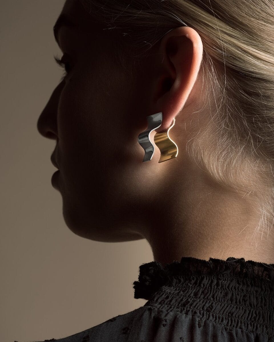 Näyttävässä Vetovoima-sarjassa on aaltoileva, hohtava pinta. Suunnittelun lähtökohtana on ollut oivaltava muotoilu, leikkimielisyys ja yhdisteltävyys. Voit yhdistellä kahdesta osasta koostuvia korvakoruja eri tavalla ja lopputulos on aina omanlainen. Jos hankit sekä hopeiset että pronssiset korvakorut, erilaisia yhdistelmiä ja ilmeitä on lukemattomia. Yhdistele ja leikittele ennakkoluulottomasti.