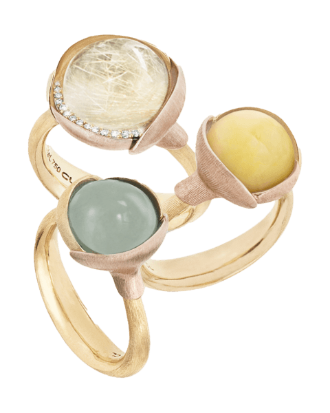 Ainutlaatuiset, värikkäin jalokivin ja säihkyvin timantein koristellut, käsin valmistetut 18 karaatin kultakorut saavat inspiraationsa kasveista ja eläimistä.