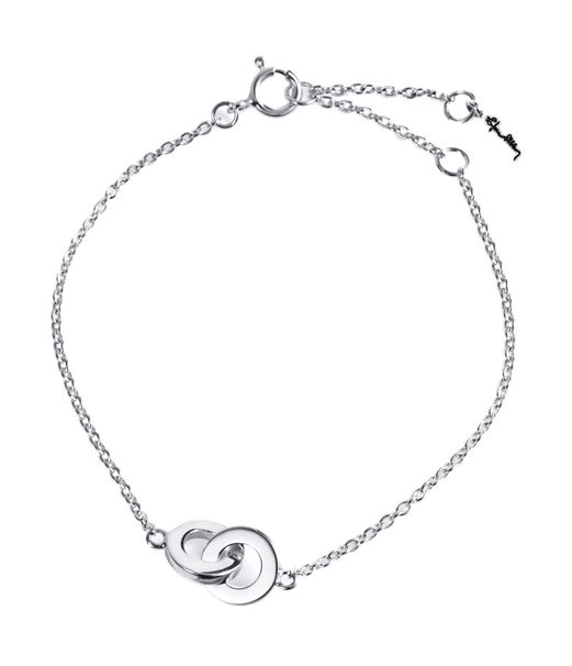 Rannekoru on valmistettu kierrätetystä sterlinghopeasta ja siinä on kaksi toisiinsa yhdistettyä rengasta.