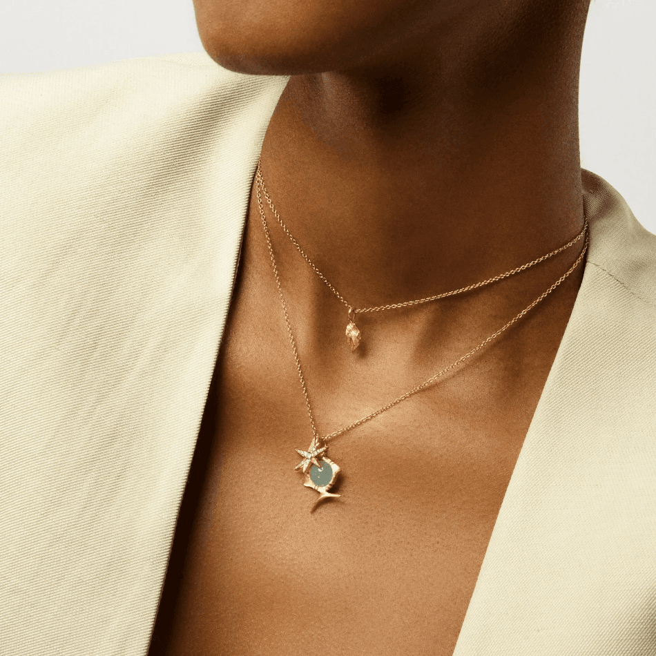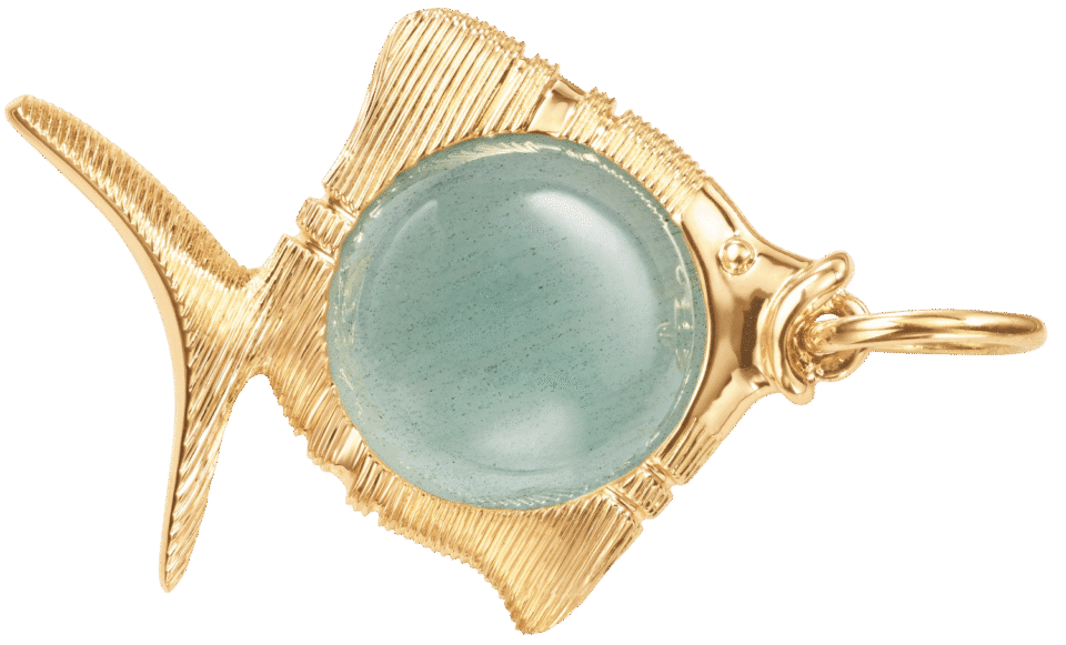 Sofia Lynggaard Normannin suunnittelema Young Fish-riipus on valmistettu 18 karaatin keltakullasta ja siinä 9 mm akvamariini.